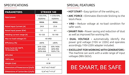 Weldcote Metals Striker 140 Inverter Stick welder 110v/220v Input power